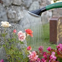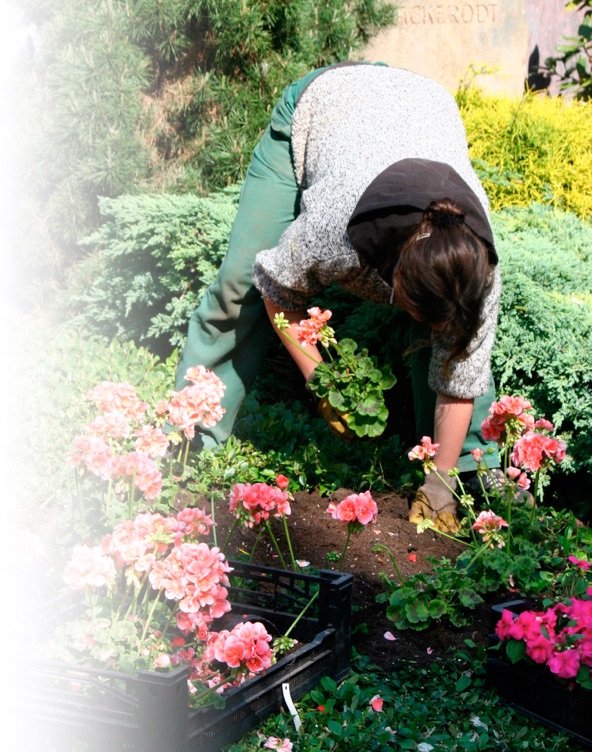 Die gärtnerische Gestaltung einer Grabstätte und deren Pflege ist traditionell ein Teil der Trauerarbeit und des Erinnerns.